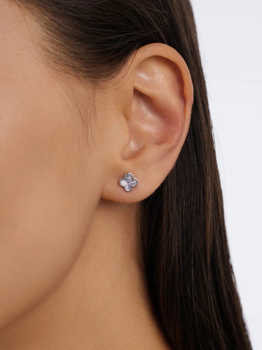 Серьги-пусеты серебряные 925 пробы с эмалью Клевер, сережки-гвоздики Четырехлистник, ср.вес изделия 0,93 гр, арт. 2027944/91пбг Ювелир Карат