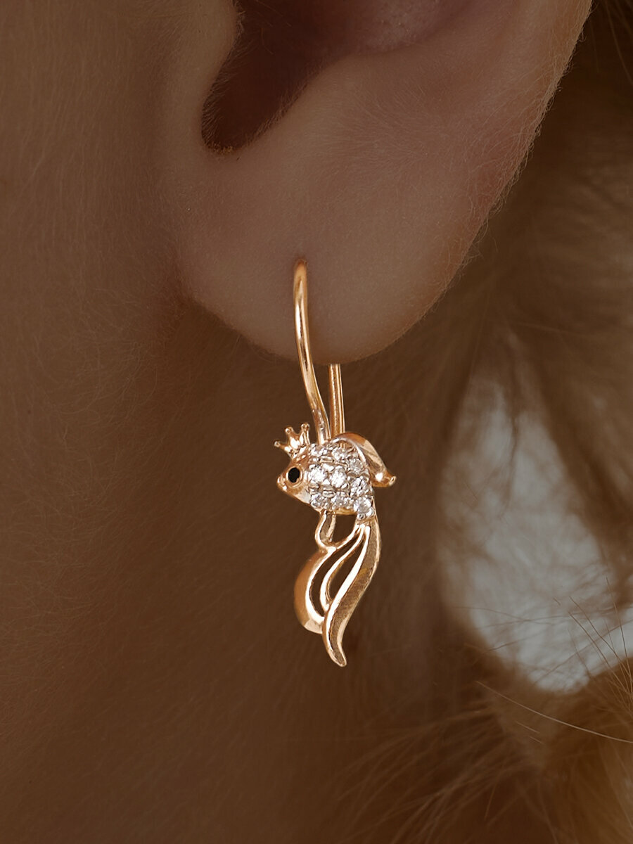 Серьги детские ювелирные серебряные 925 пробы в позолоте Рыбки, ср.вес изделия 1,0 гр, арт. 2829086/9п.
