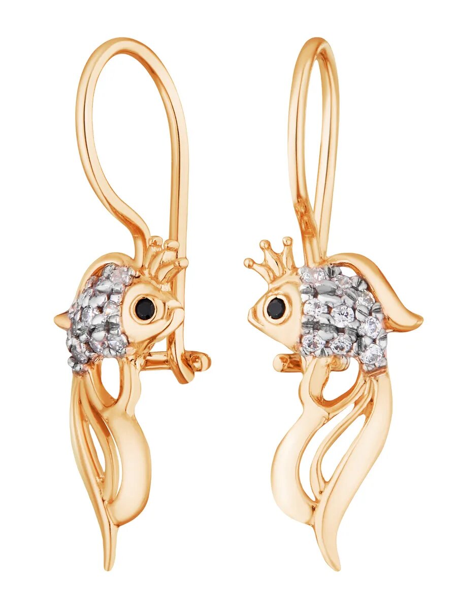 Серьги детские серебряные 925 пробы с фианитами Рыбки, ср.вес изделия 0,93 гр, арт. 2829086/9.