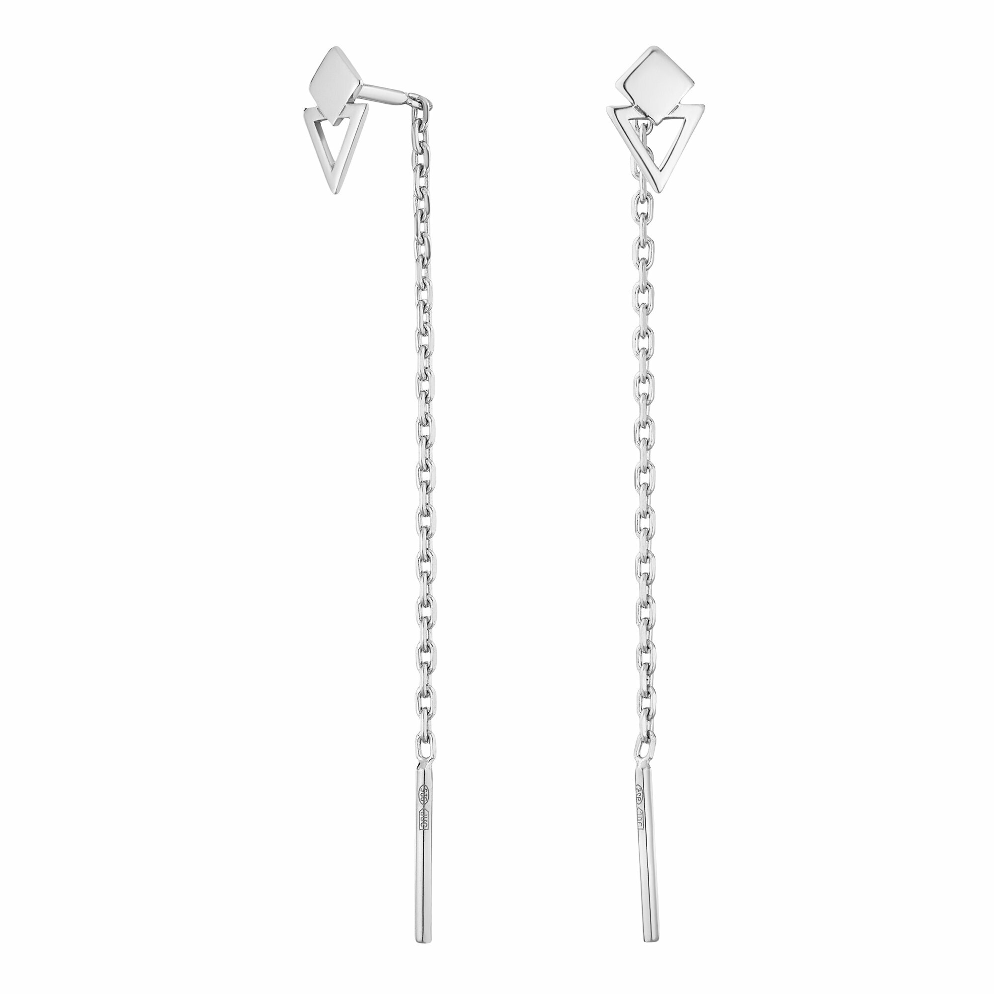 Серьги серебряные 925 пробы длинные протяжки Ромб, продевки цепочки Треугольник, ср.вес изделия 0,8 гр, арт. 2029971/9