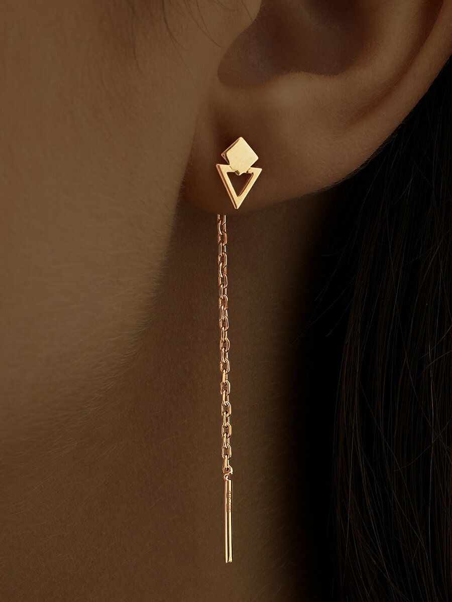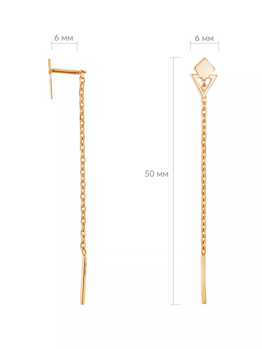 Серьги-протяжки серебряные 925 пробы в позолоте Ромб, сережки-продевки длинные геометрия, ср.вес изделия 0,9 гр, арт. 2029971/9п