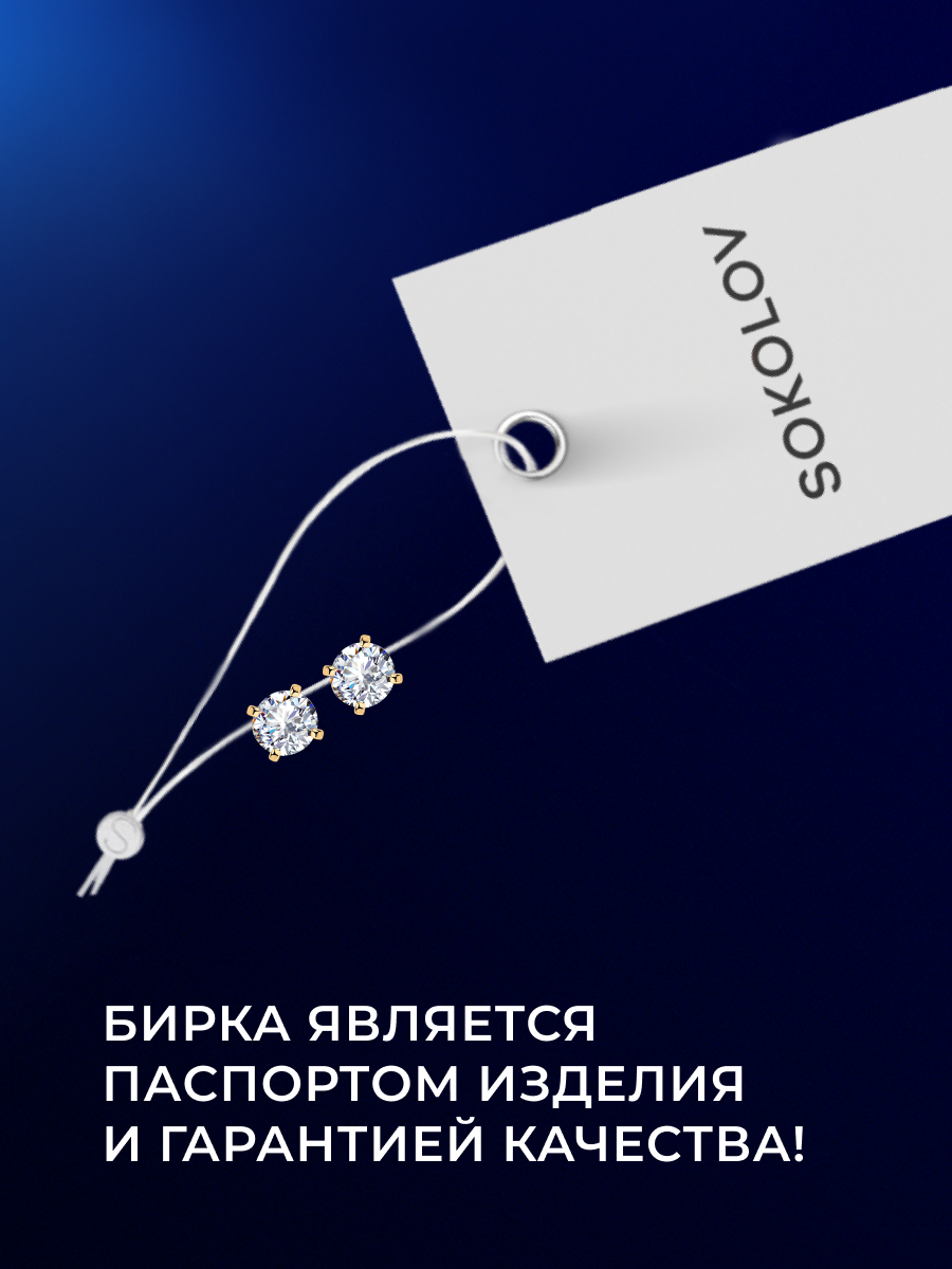 Серьги пусеты SOKOLOV, серебро, 925 проба, золочение, фианит, , бесцветный интересное: