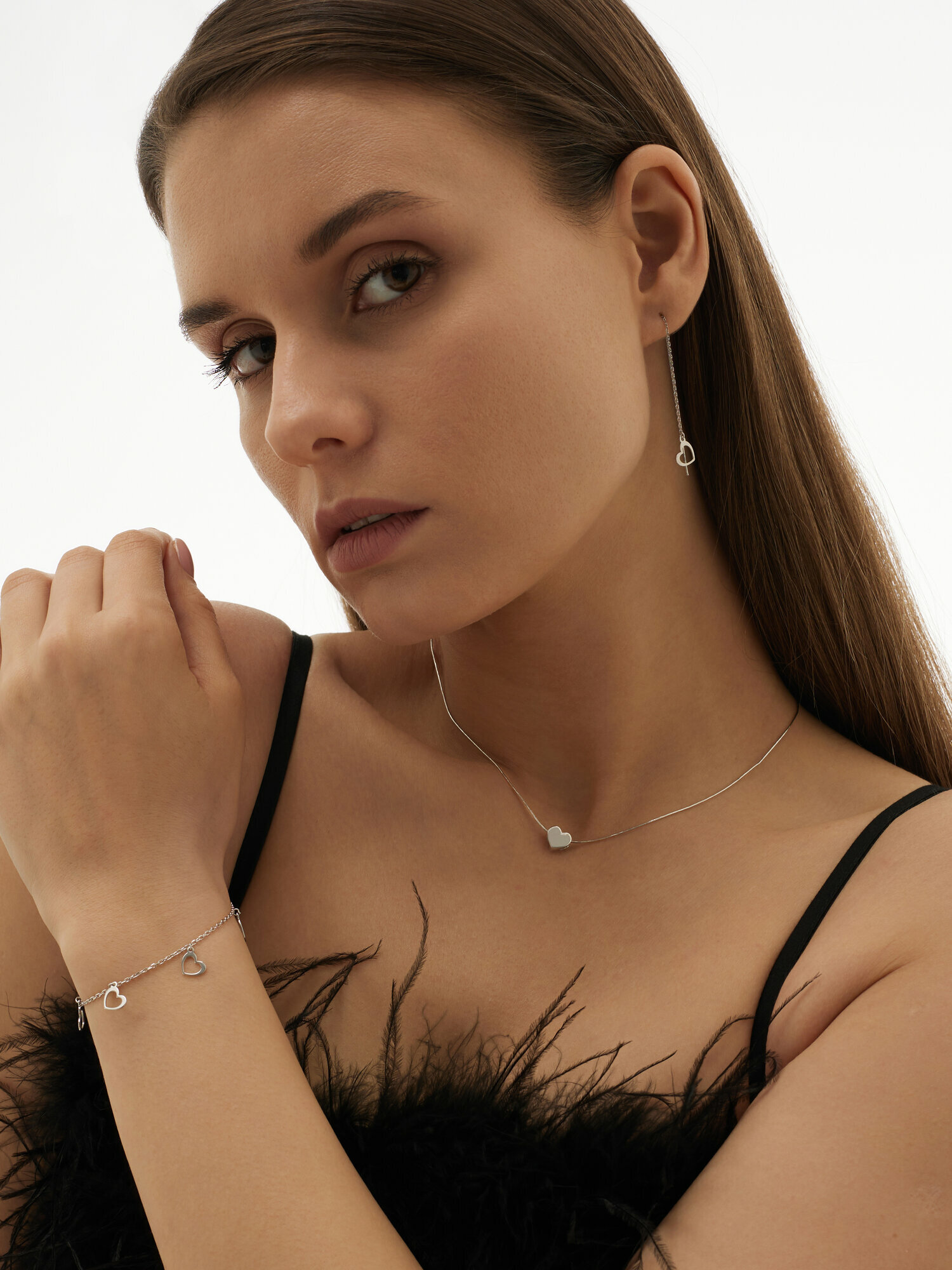Серьги серебряные 925 пробы длинные протяжки продевки Сердце на цепочке, ср.вес изделия 0,8 гр, арт. 2029468/9п.