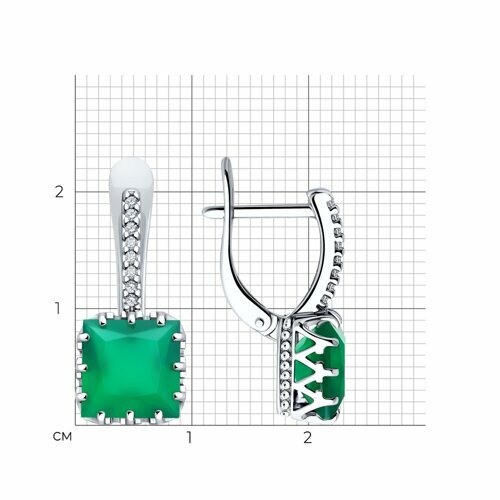 Серьги Яхонт, серебро, 925 проба, фианит, агат, , бесцветный, зеленый интересное:
