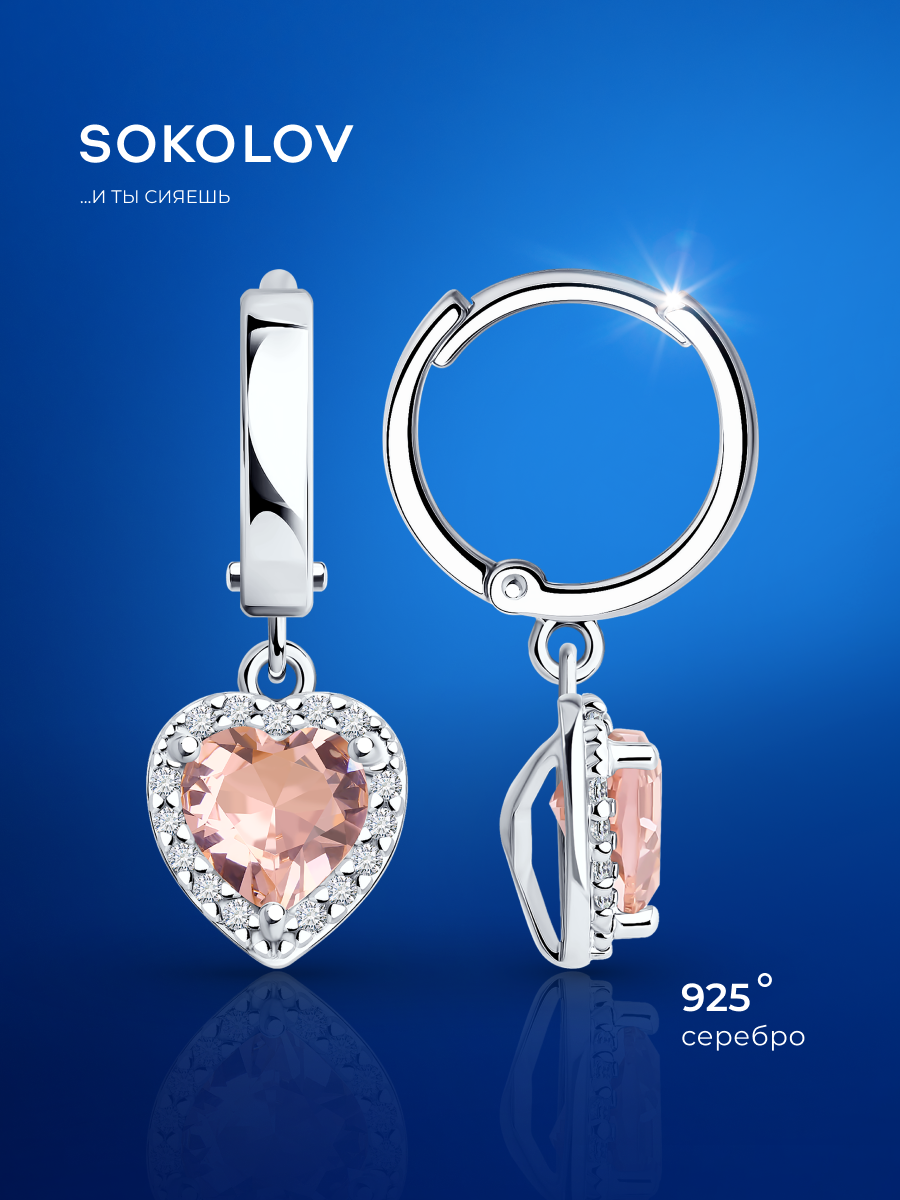 Купить Серьги с подвесками SOKOLOV, серебро, 925 проба, родирование, фианит, ситалл, размер 24 мм, , серебро