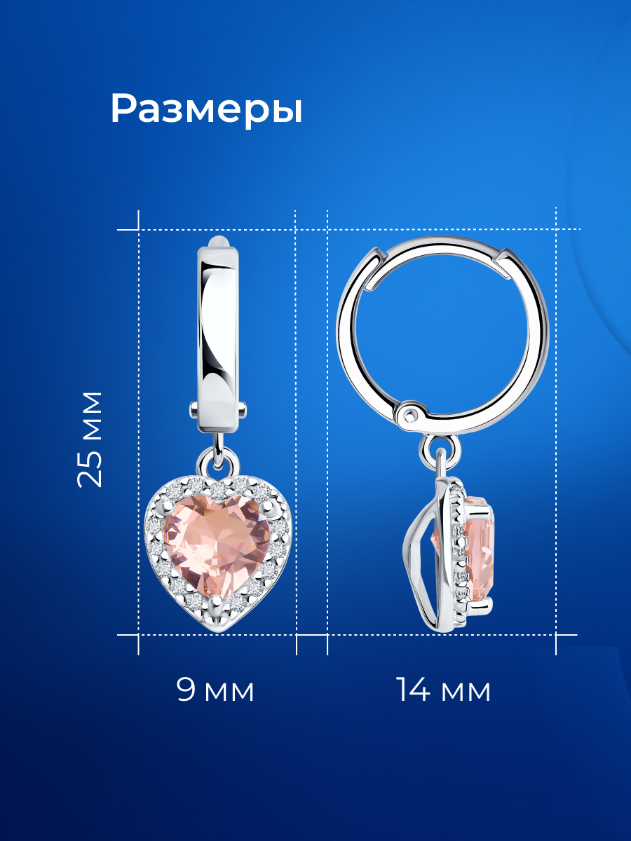 Серьги с подвесками SOKOLOV, серебро, 925 проба, родирование, фианит, ситалл, размер 24 мм, , серебро интересное: