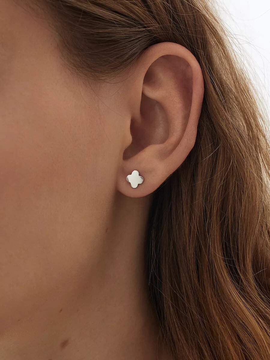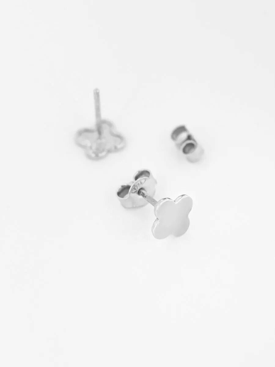 Серьги-пусеты серебряные 925 пробы Клевер, сережки-гвоздики Четырехлистник, ср. вес изделия 0,805 гр, арт. 20210143/91