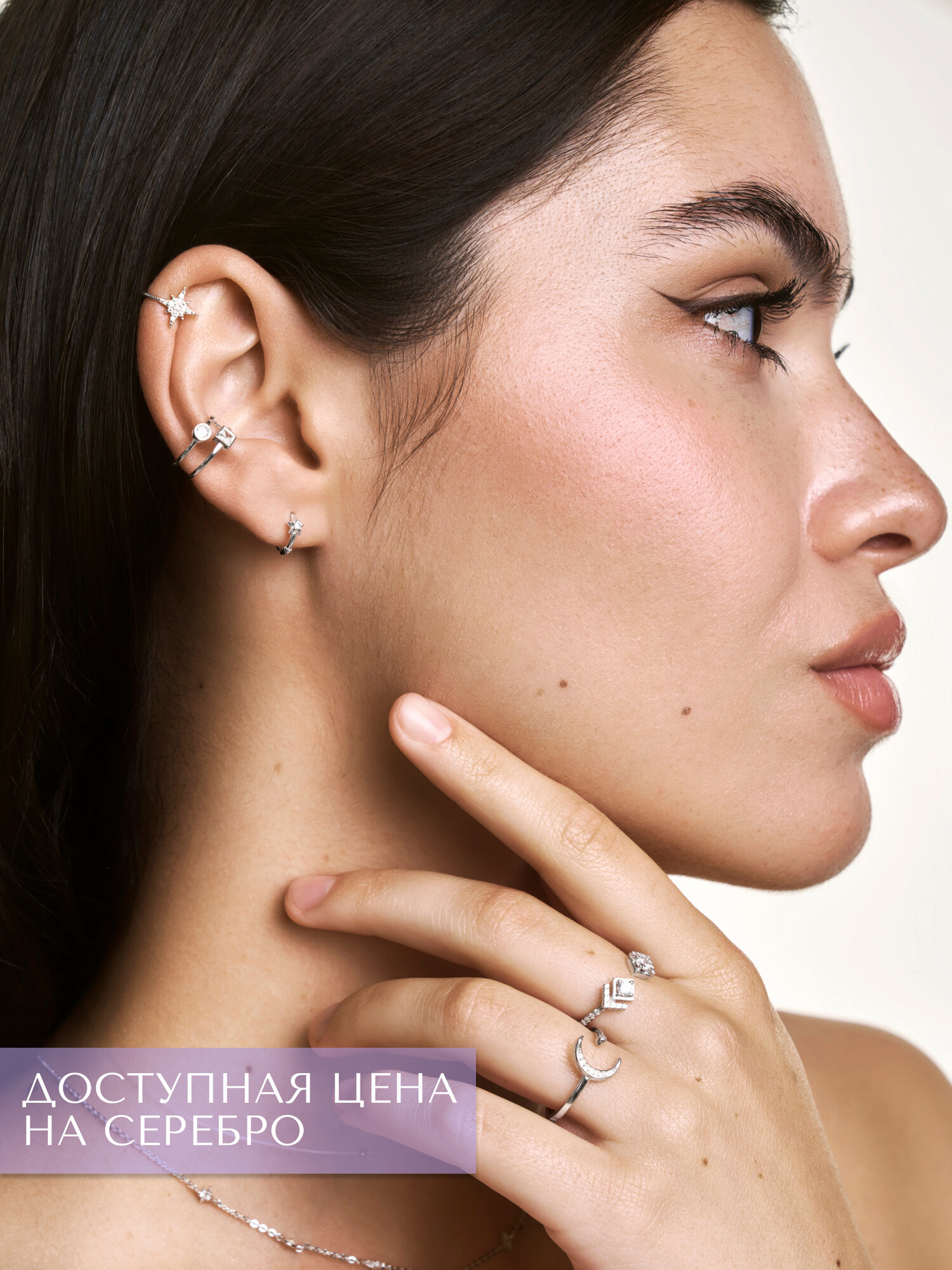Моносерьга MIESTILO, серебро, 925 проба, родирование, фианит, , серебристый, серый интересное: