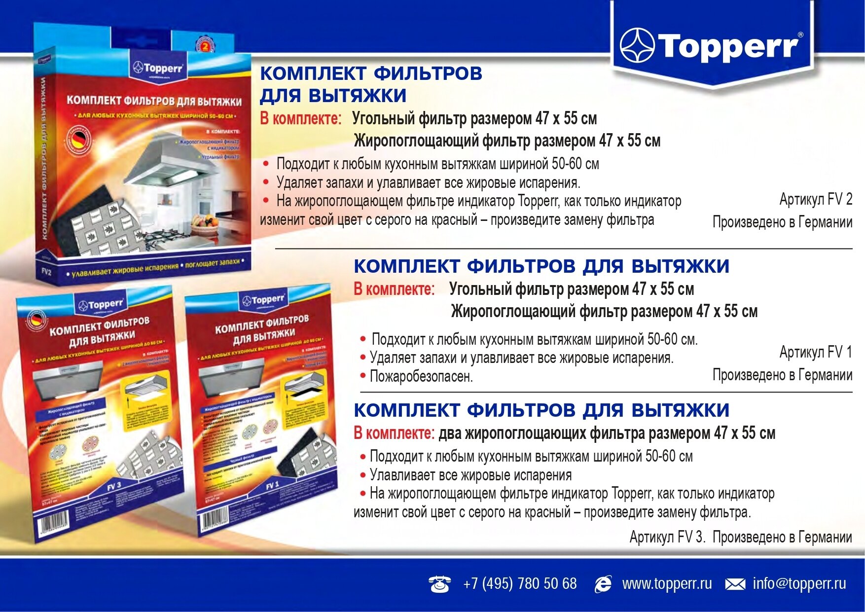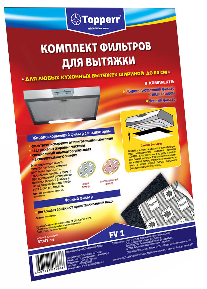 Topperr Комплект фильтров для вытяжки (черный + жиропоглощающий), 2 шт, FV 1