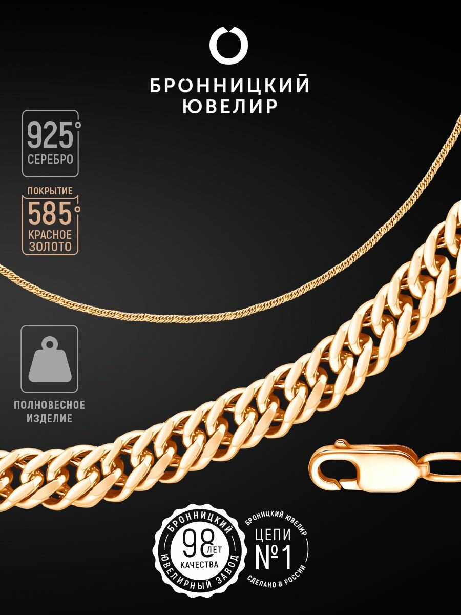 Цепь Бронницкий Ювелир, серебро, 925 проба, золочение, длина 50 см, средний вес 3.93 г, , желтый, золотистый