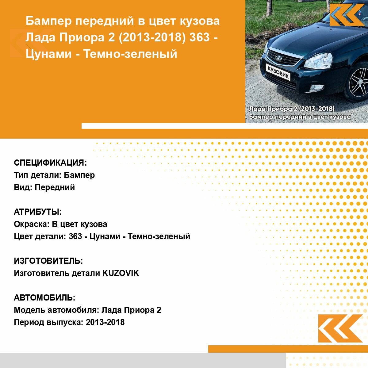 | Подробная комплектация | Бампер передний в цвет кузова для Лада Приора |