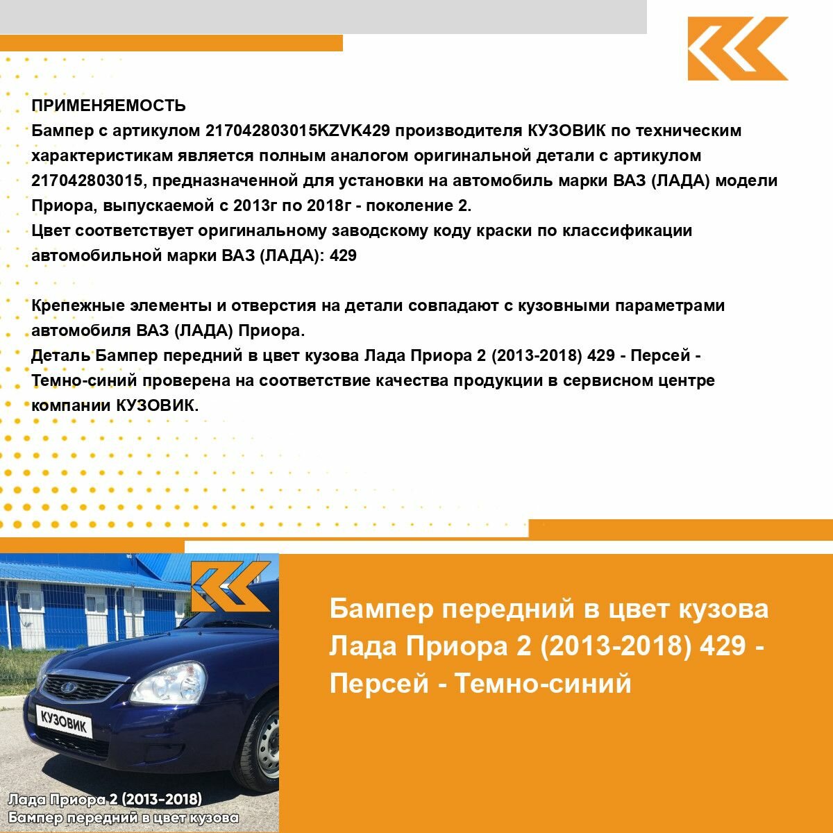 | Подробная комплектация | Бампер передний в цвет кузова для Лада Приора |