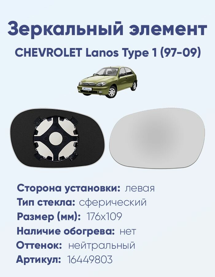 Зеркальный элемент левый CHEVROLET Lanos Type 1 (97-09) сфера нейтральный без обогрева интересное: