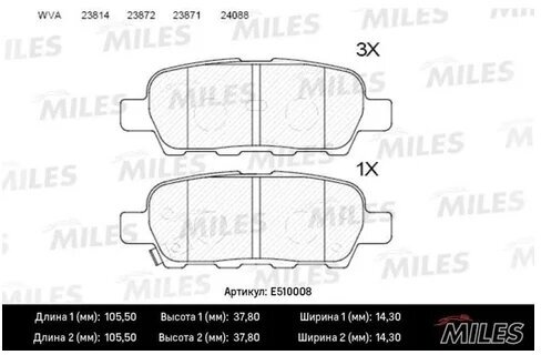 Колодки Тормозные Дисковые Зад Miles арт. E510008