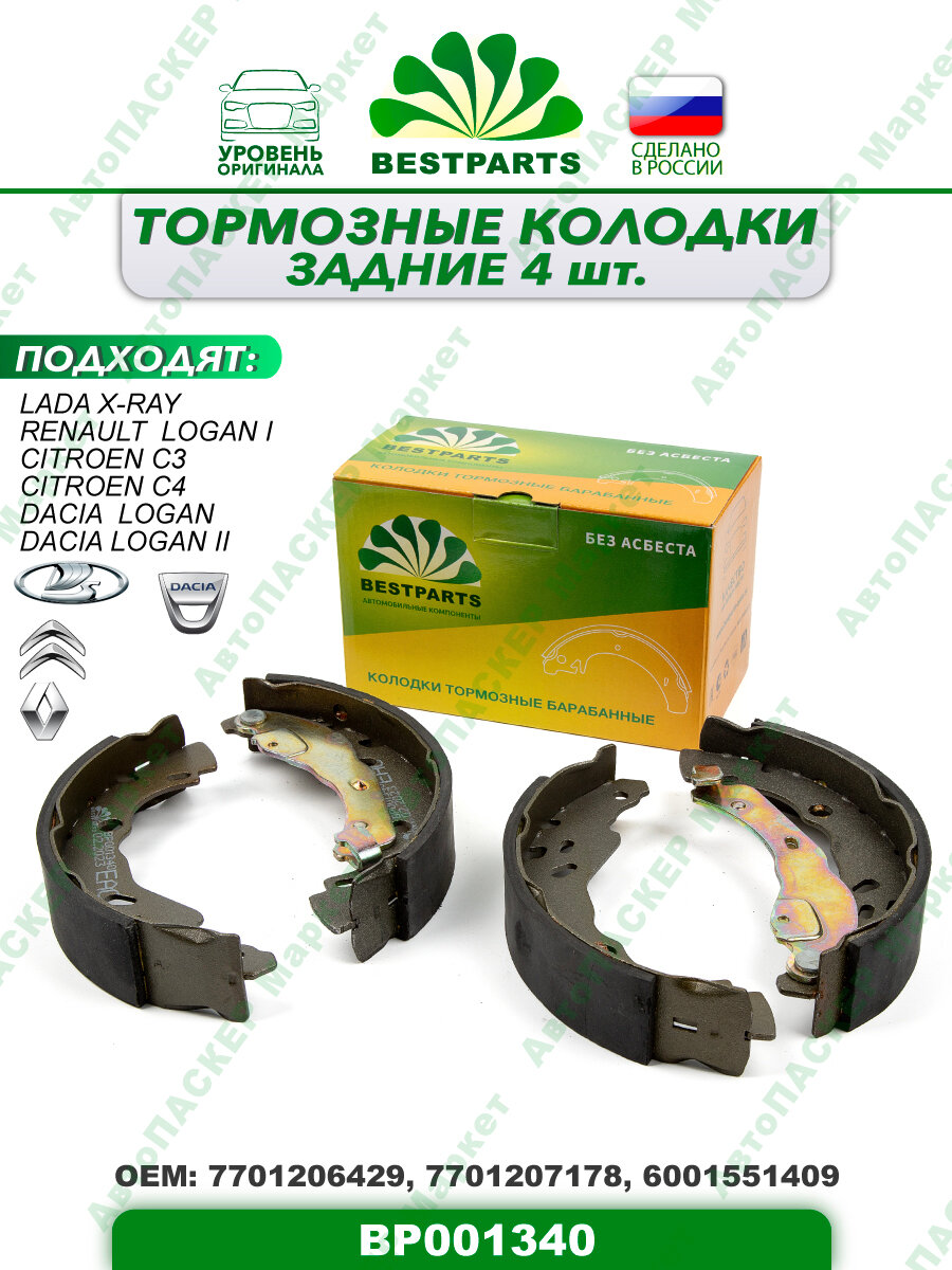 Колодки тормозные задние для а/м Ваз Lada Xray, Renault Logan 1, Citroen C3/C4, Dacia Logan/2, 4 шт, BP001340, 25908 интересное: