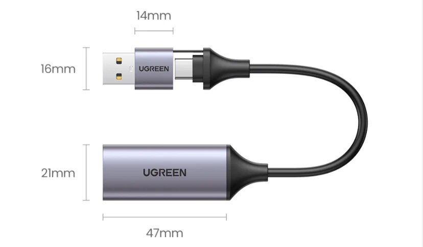 Устройство видеозахвата UGREEN CM716 (25854) HD USB 1080P Video Capture Device. Цвет: серый
