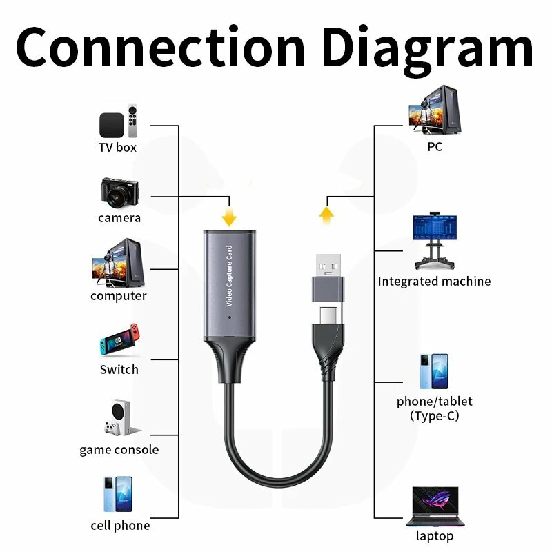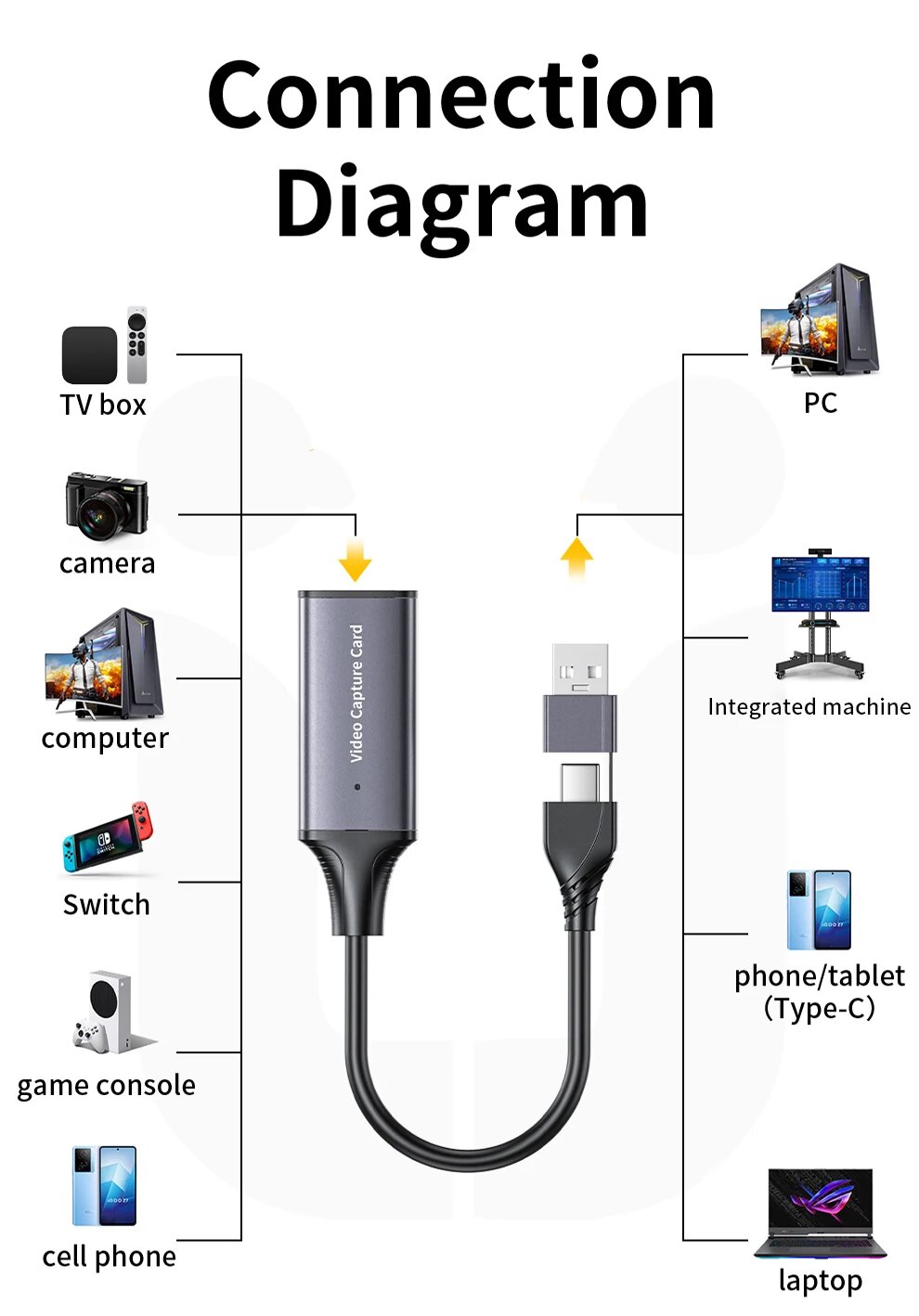 Карта видеозахвата Unnlink, USB C, HDMI на USB, 1080P, 60 кадров в секунду