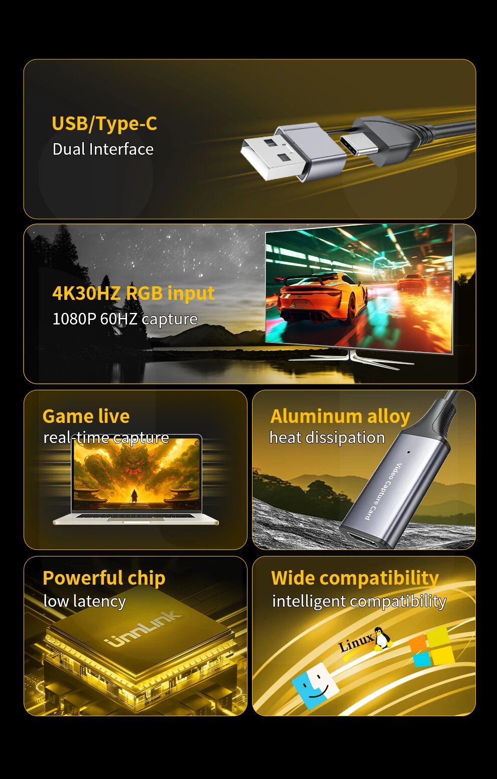 Unnlink HDMI к USB карта видеозахвата 1080P 60fps, Черный интересное:
