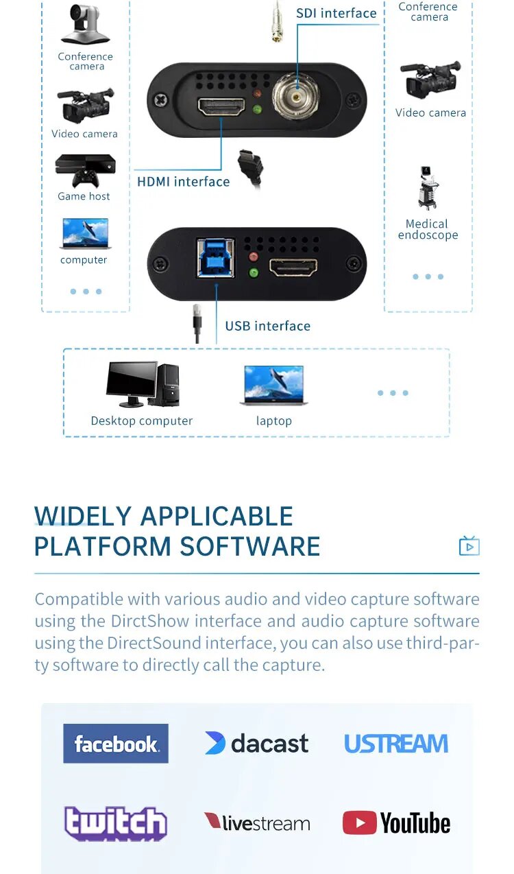 Unisheen 2-канальный SDI HDMI видеозахват UC3300S, UC3300S интересное: