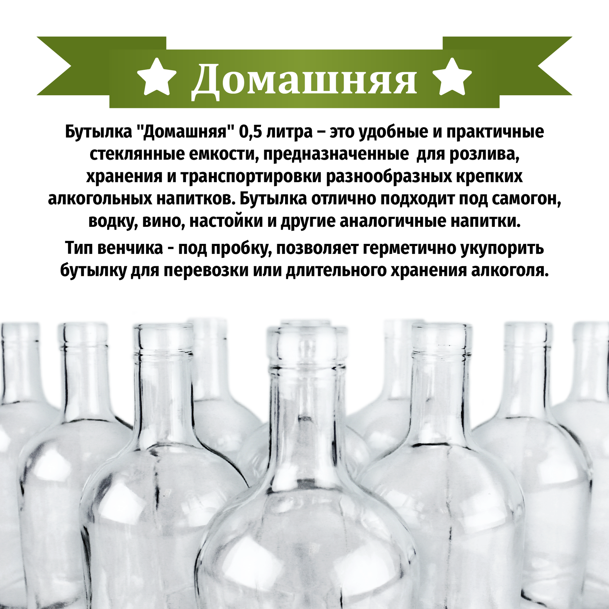 Стеклянная бутылка "Домашняя", 0,5 литра, 12 шт, пробки в комплекте BUTYLKA.SU интересное: