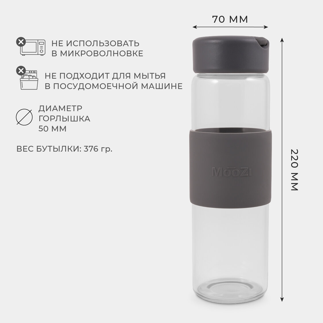 Купить Стеклянная бутылка MOOZI, для воды, 520мл, серая, с герметичной крышкой