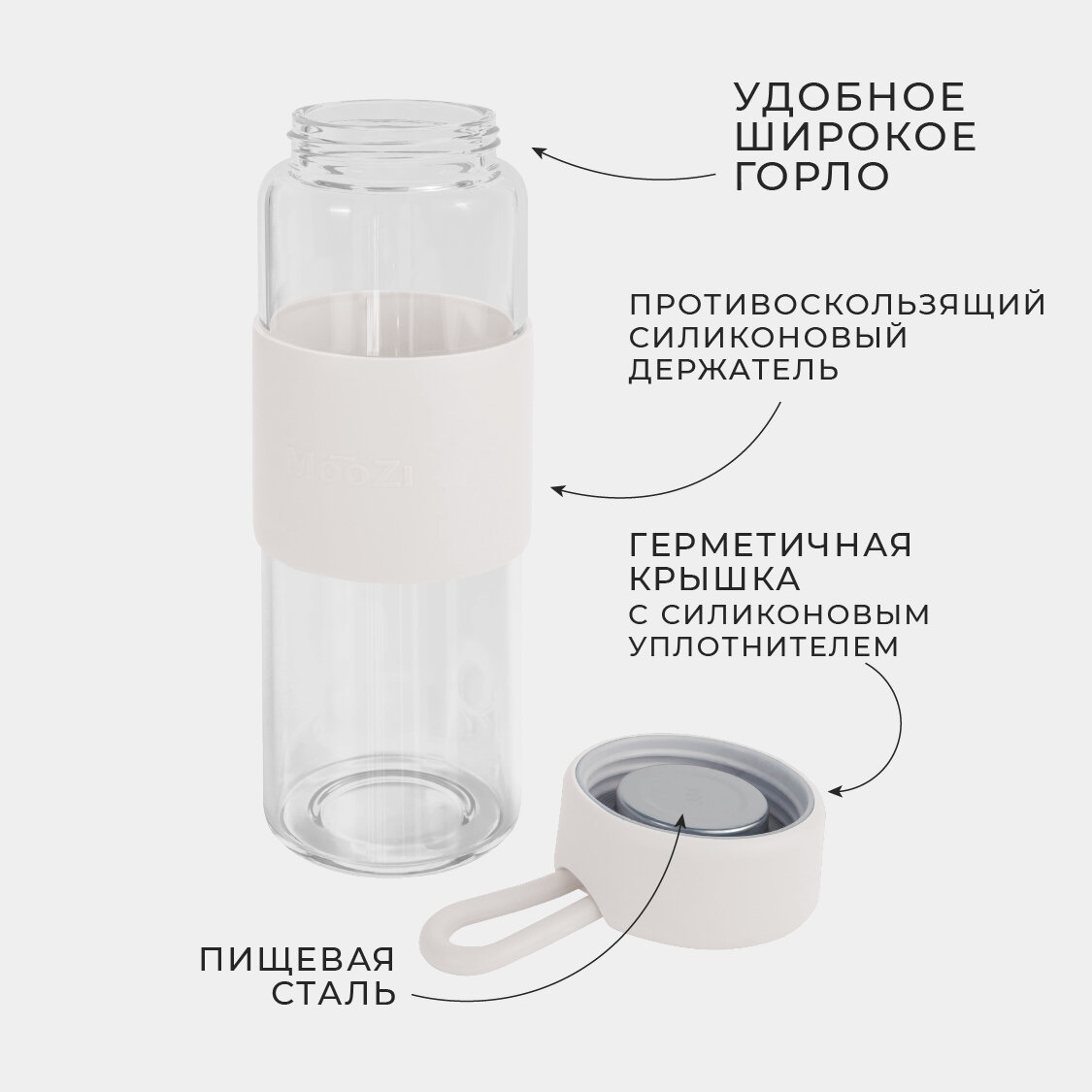 Стеклянная бутылка для холодных и горячих напитков, спортивная бутылка с силиконовым ободком для зала, офиса, школы MOOZI, 520 мл, цвет бежевый