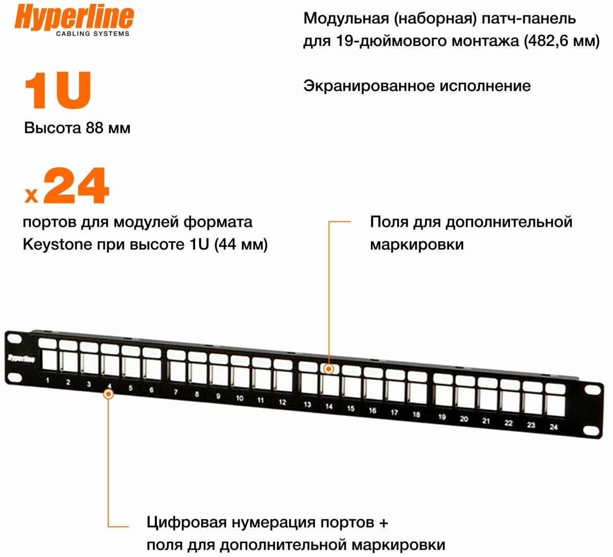 Панель Hyperline PPBL3-19-24-SH-RM Модульная патч-панель 19", 24 порта, Flat Type, 1U, для экр