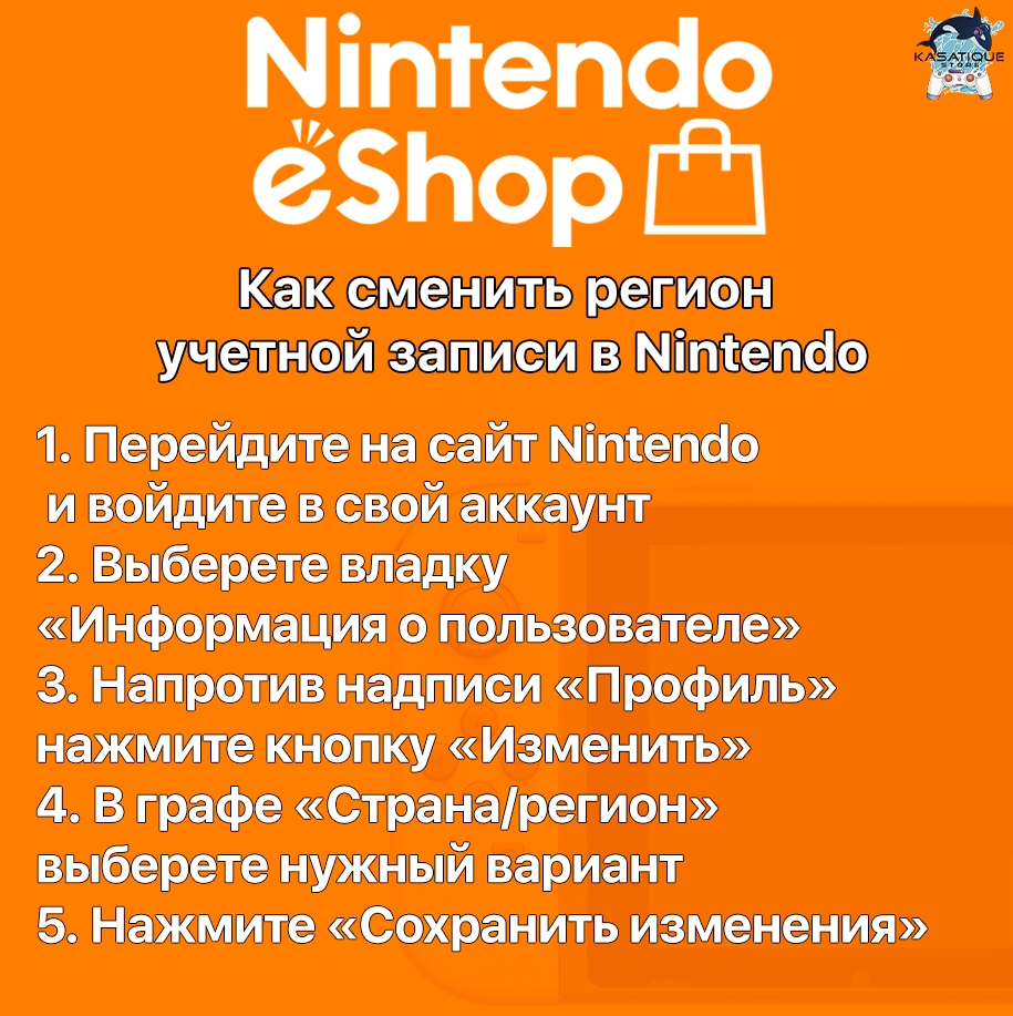 | Инструкция по активации | Инструкция: 1. Переходим в Нинтендо стор 2. В верхнем правом углу нажимаем Log In / Sign Up, далее Log In и заходите в свой аккаунт 3. В верхнем правом углу нажимаем на свой логин, выбираем Account Sengs 4. В разделе "Профиль" жмем "Изменить", меняем страну на США, подтверждаем изменения. 5. После этого купленный код можно активировать по ссылке |