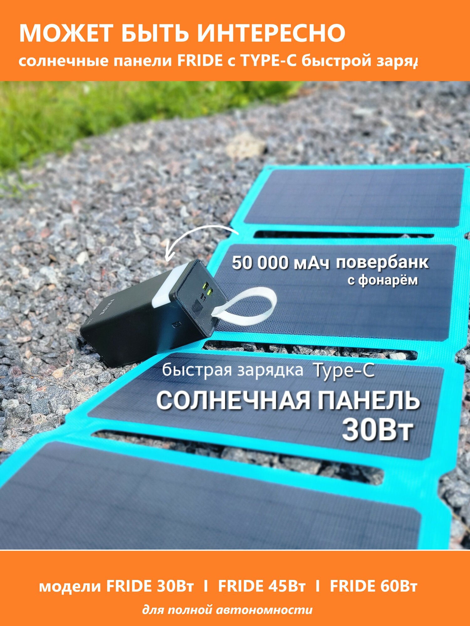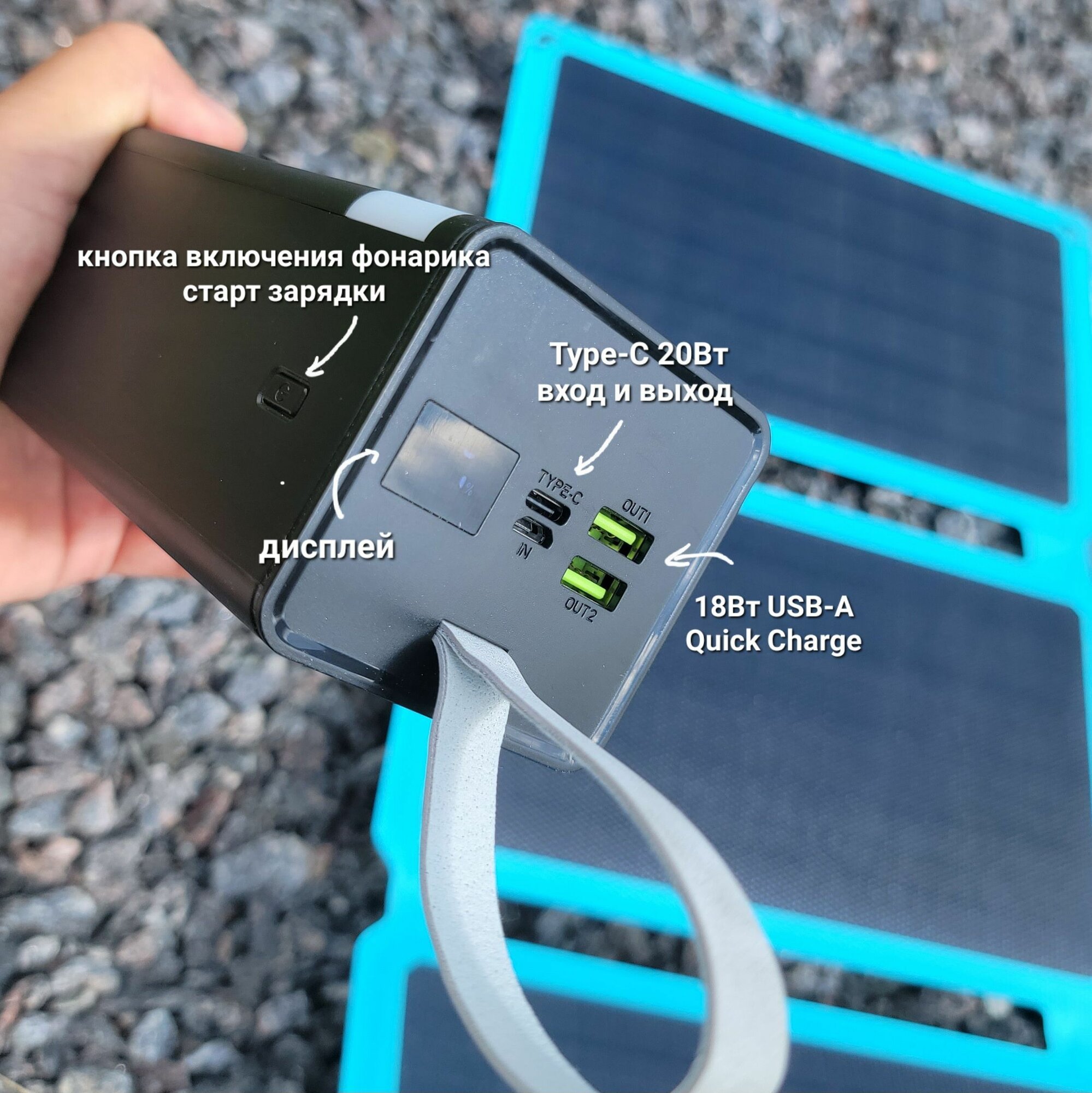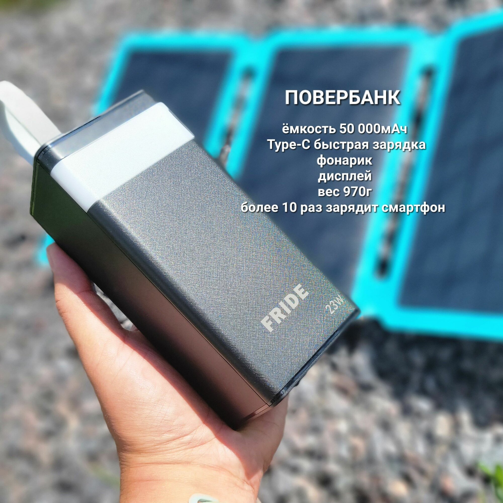 Купить Комплект повербанк powerbank 50000mAh с солнечной батарей TypeC 30Вт быстрая зарядка