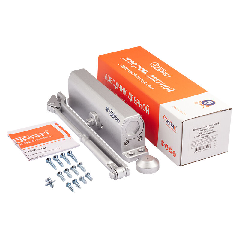 Доводчик дверной Нора-М 740 DA, для дверей 60 - 110 кг, с задержкой закрывания, серебро