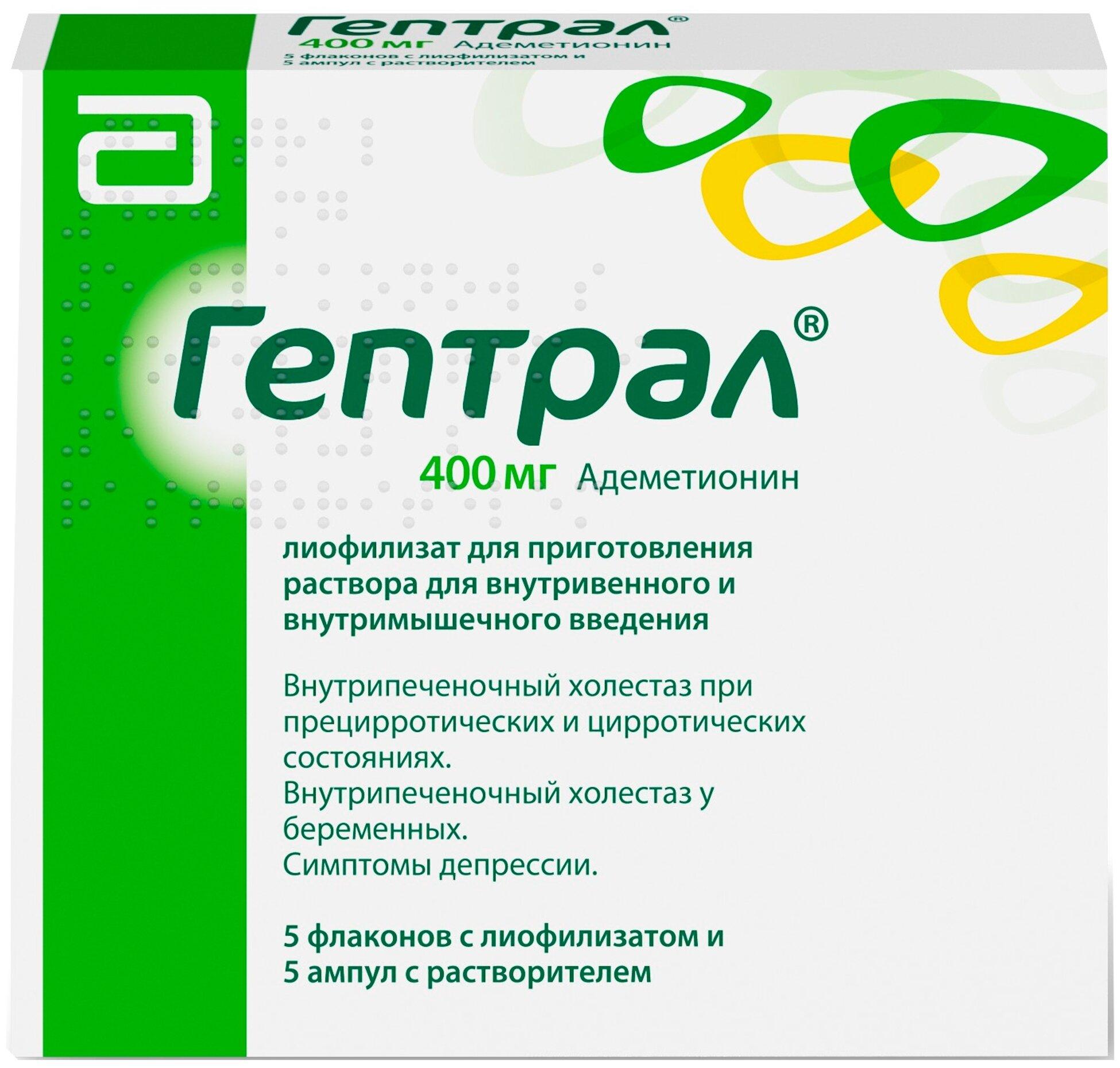 Гептрал лиоф. д/приг. р-ра для в/в и в/м введ. фл. + р-ль в амп., 400 мг, 5 шт. интересное: