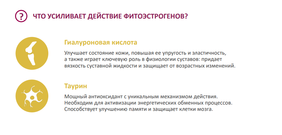 | Состав | Таурин, экстракт сои, генистеин GeniVida, гиалуронат натрия, витамин Д3, фолиевая кислота. |