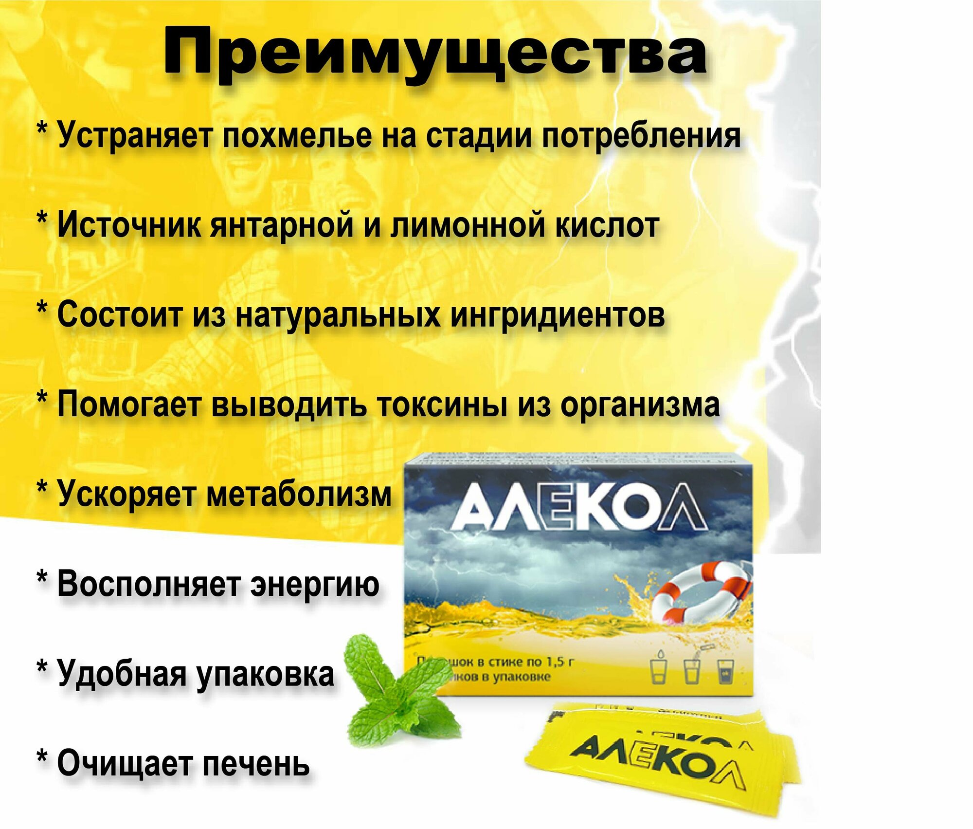 | Фармакологическое действие | Способствует ускорению метаболизма алкоголя, уменьшению его токсического влияния и снижению выраженности похмельного синдрома. |