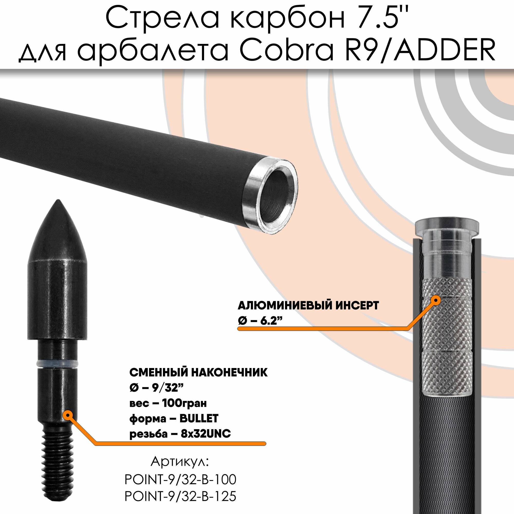 Стрела карбоновая 7,5" для арбалета Ek Cobra System R9 (3шт.) интересное: