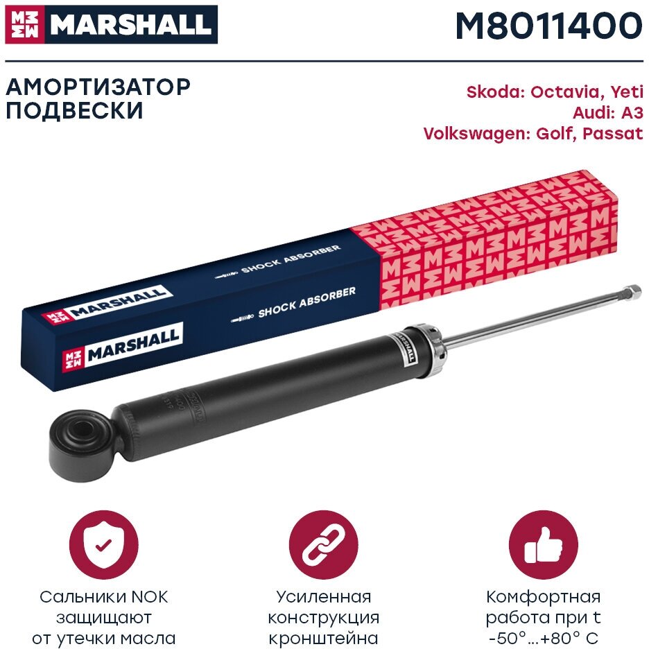 Амортизатор газонаполненный задний MARSHALL M8011400 для VAG A3 03-/Altea 04-/Octavia II 04-/Yeti 09-/Golf V,VI 03-/Passat VI,VII 05- (344459 // 1K0512011PE, 1K0513029BS, 1K0513029CA)