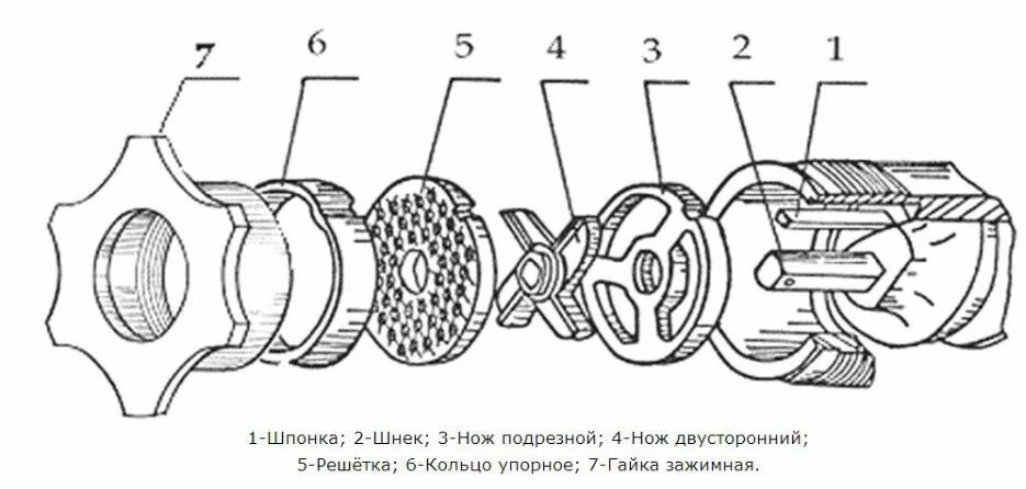 | Подробная комплектация | мясорубка, нож двусторонний, нож подрезной, решетка |