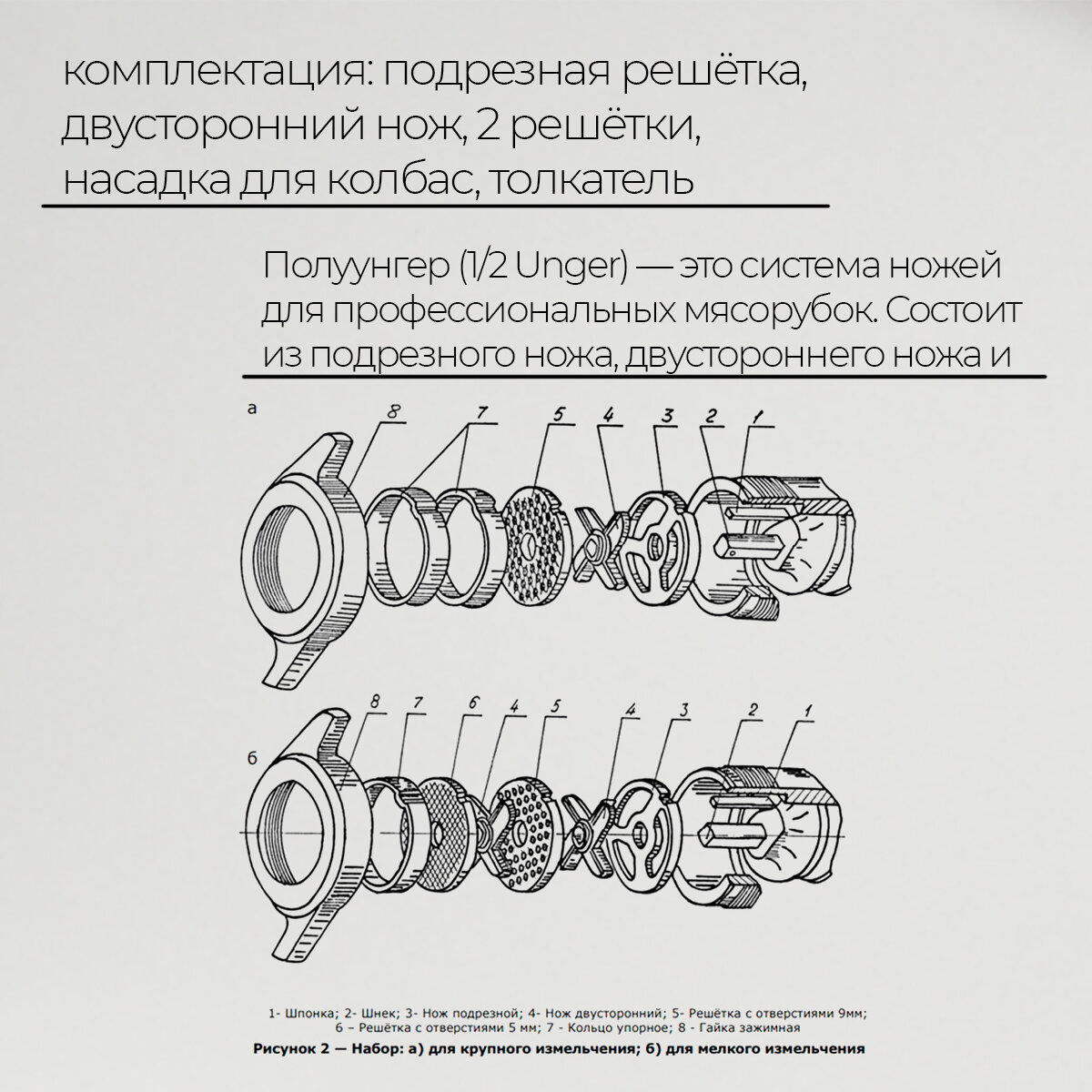 Мясорубка профессиональная Торгмаш барановичи МИМ-80 1/2 унгера, Насадка для колбас, 2 решетки, Подрезная решетка, 220В, 0,81 кВт. интересное: