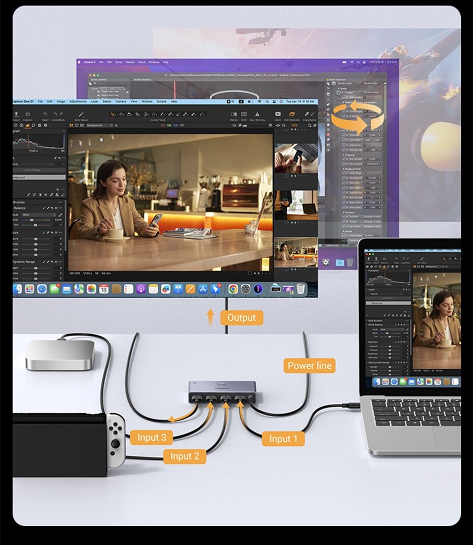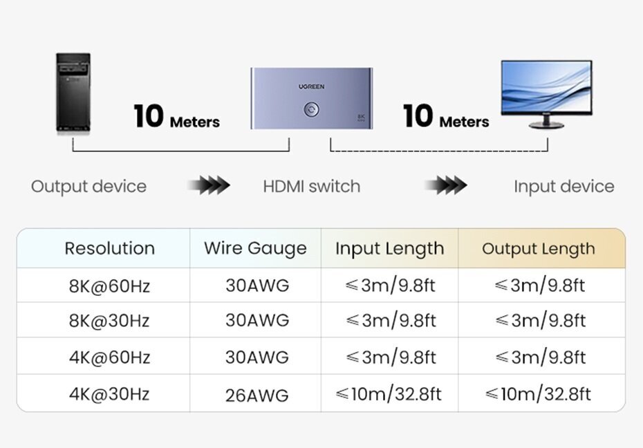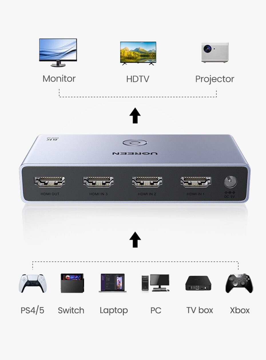 Разветвитель 8K HDMI Ugreen сплиттер Ugreen 3 входа /1 выход