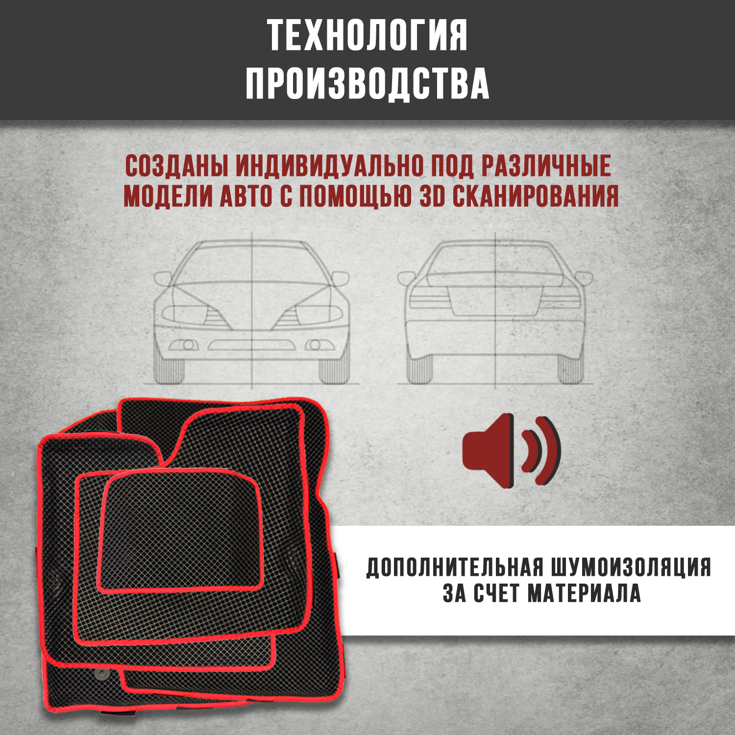 EVA (ЭВА, ЕВА) коврики автомобильные с бортами в салон автомобиля для Рено Логан 1 / Renault Logan 1 (2004-2015) черные/ красный кант