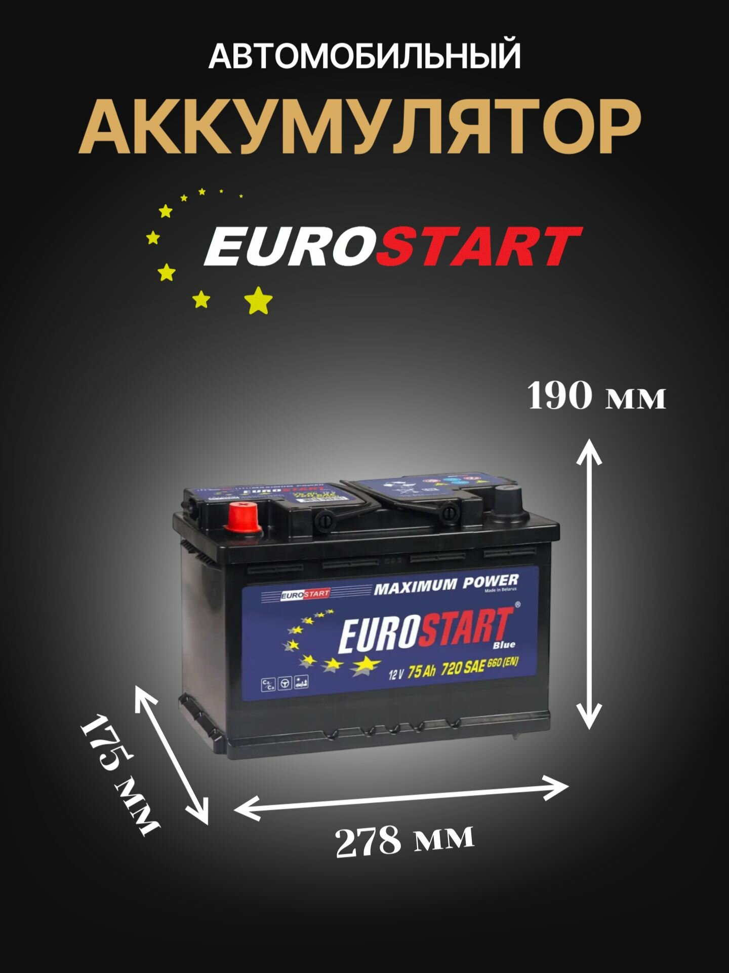 Аккумулятор автомобильный EUROSTART Blue 75Ач L+ EN660A 278x175x190 (EB751) B13 Прямой полярности