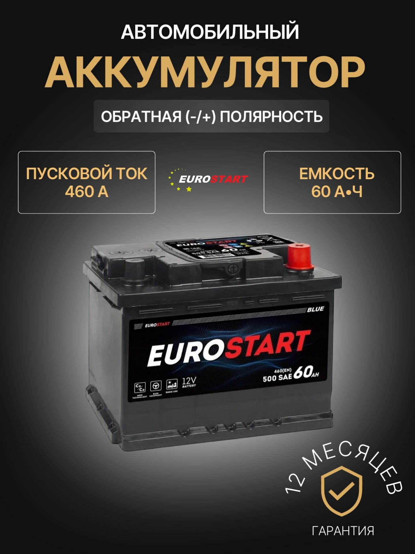 Аккумулятор автомобильный EUROSTART Blue EB601 12В 60Ач 460А