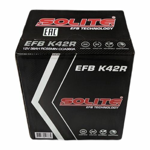 Аккумулятор автомобильный Solite EFB K42R 12В 38Ач 360А интересное: