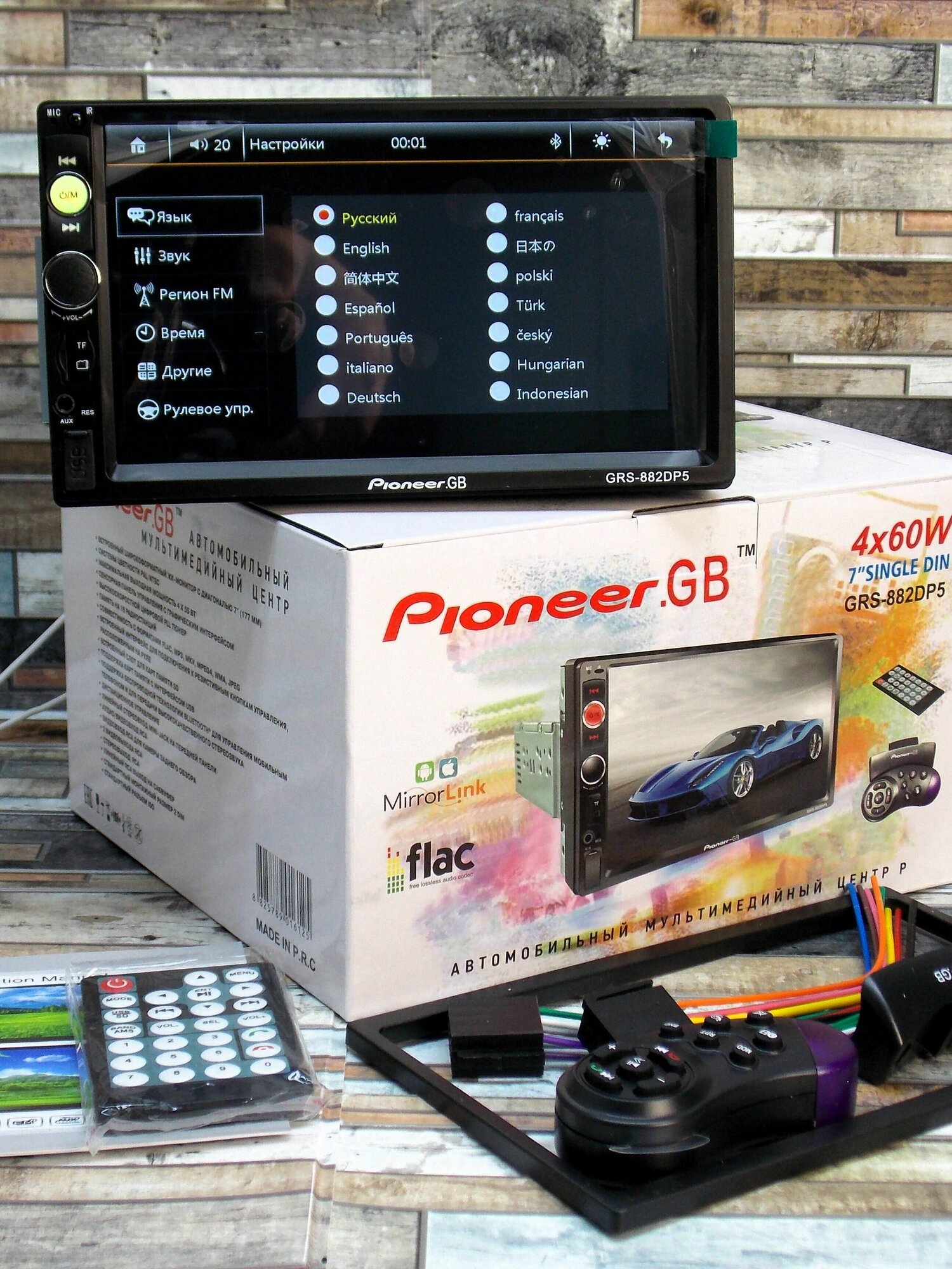 Автомагнитола Pioneer.GB GRS-883DP5 7* дюймовый автомобильный плеер (1din- 2din), Bluetooth, FM интересное: