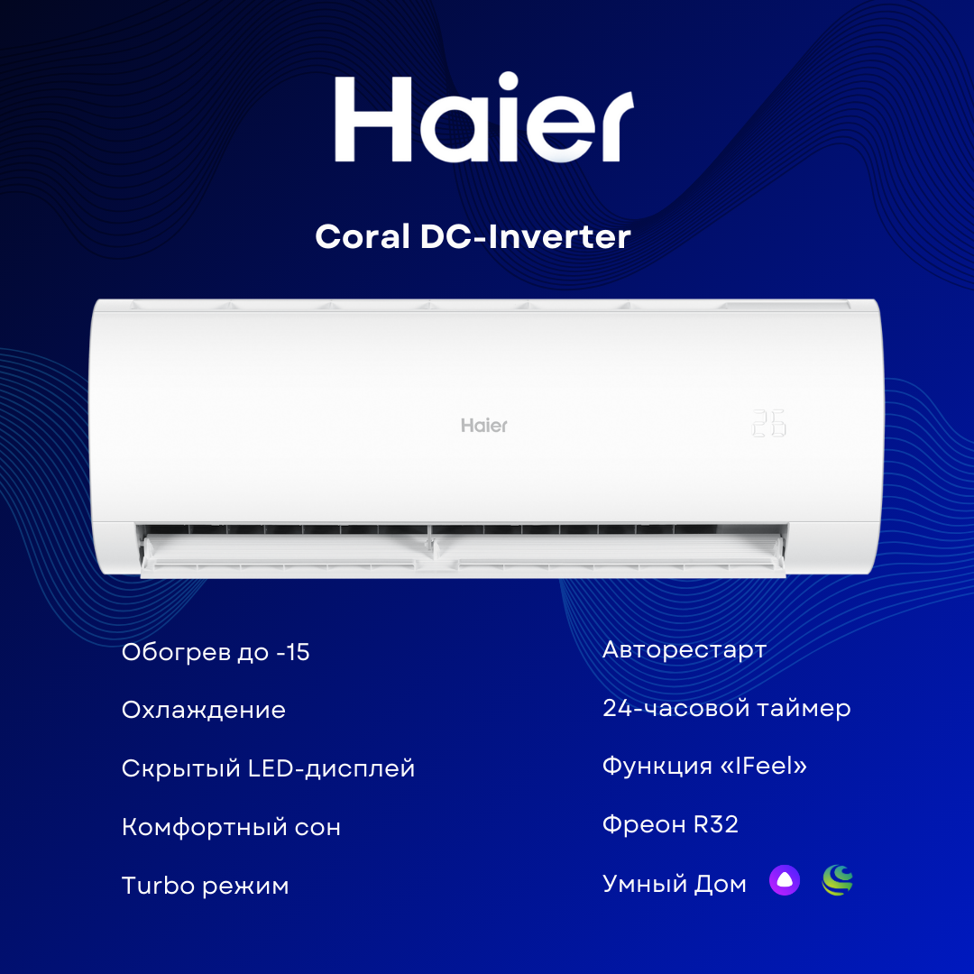 Инверторная сплит-система Haier Coral DC-Inverter AS25HPL2HRA / 1U25HPL1FRA на 25 м² интересное:
