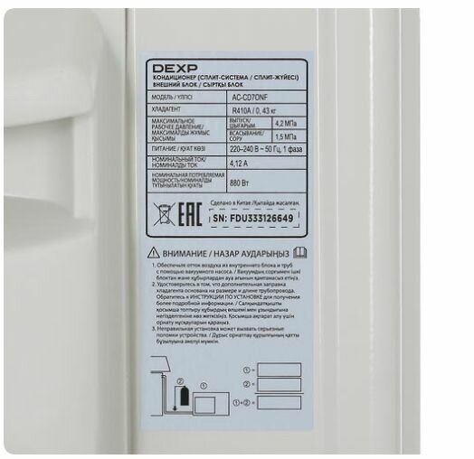 Кондиционер настенный сплит-система DEXP AC-CD12ONF белый 35m2 интересное: