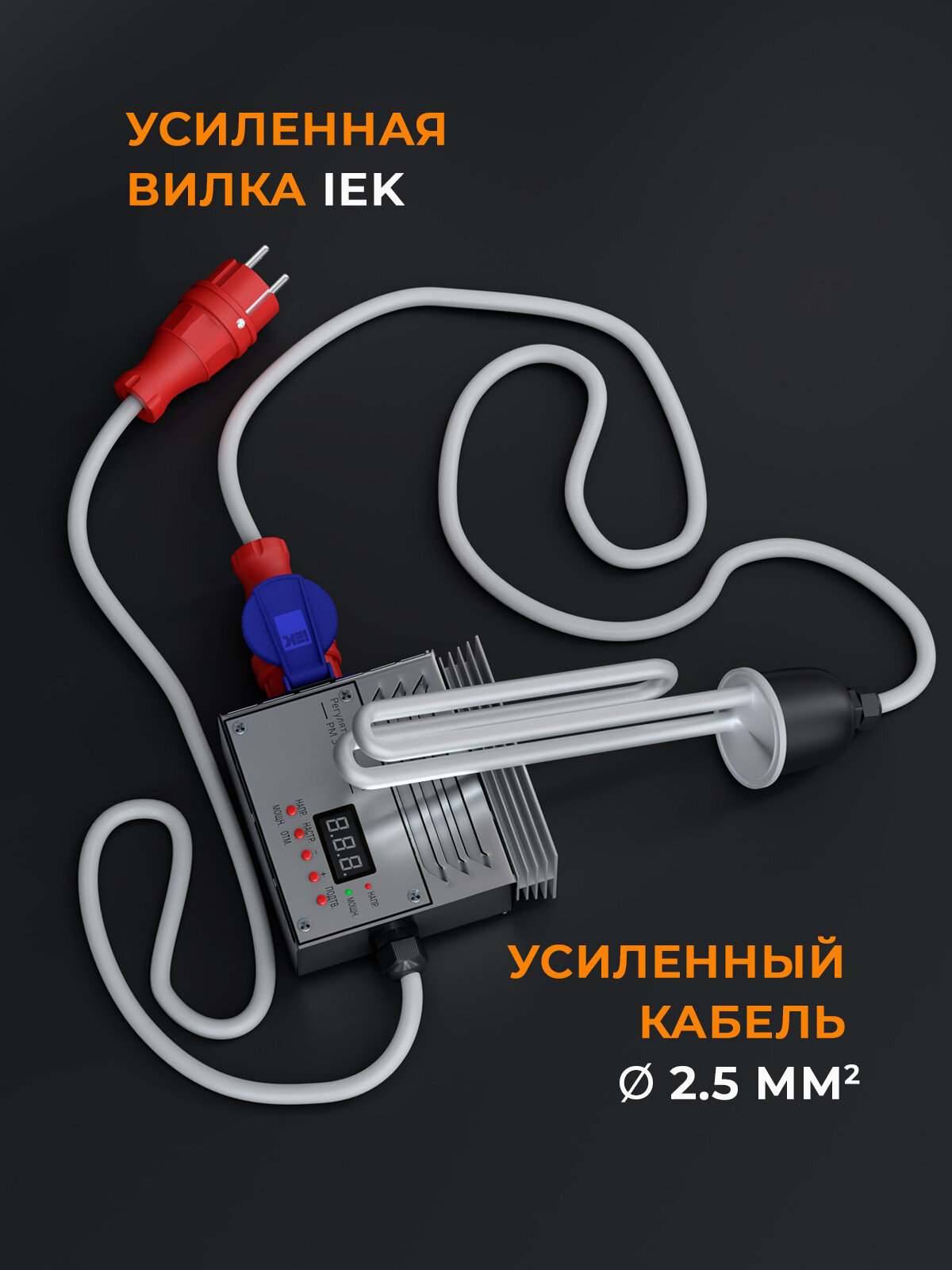 | Подробная комплектация | В комплекте: ТЭН 3,5 кВт, цифровой блок регулировки, общая длина кабеля 2 м. |