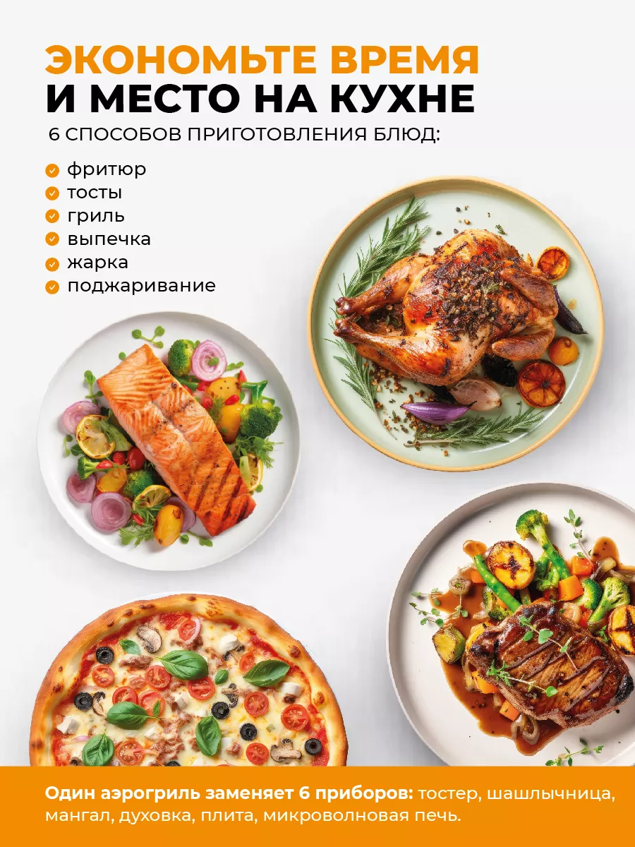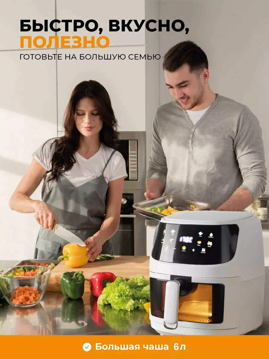 Аэрогриль, Аэрофритюрница электрическая/ 8 программ приготовления/объем 6 л /Мультипечь для кухни 1350 Вт, белая интересное: