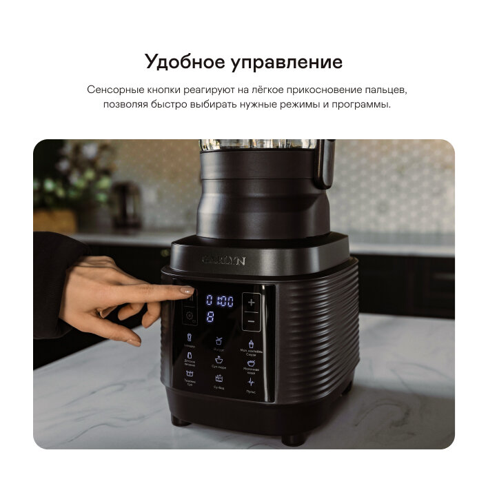 Блендер стационарный с подогревом GARLYN SM-3000. Максимальная мощность 3250 Вт. Максимальная скорость 26 000 об/мин. интересное: