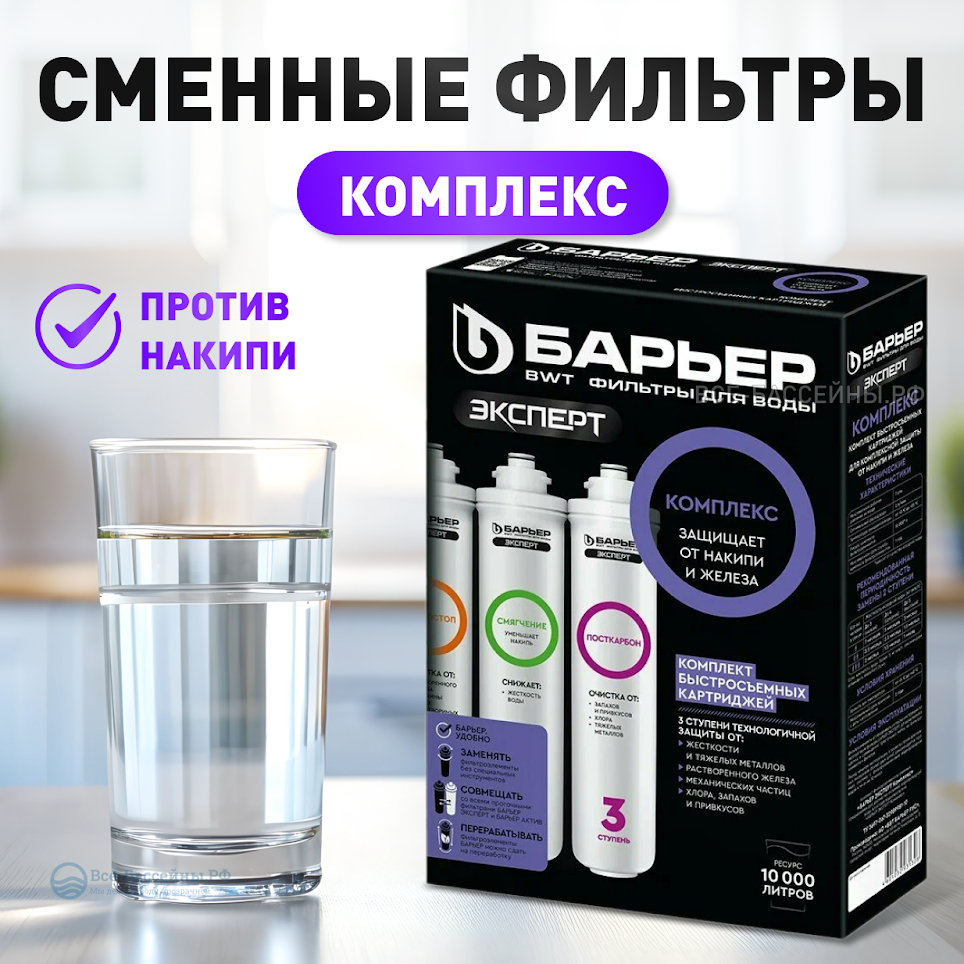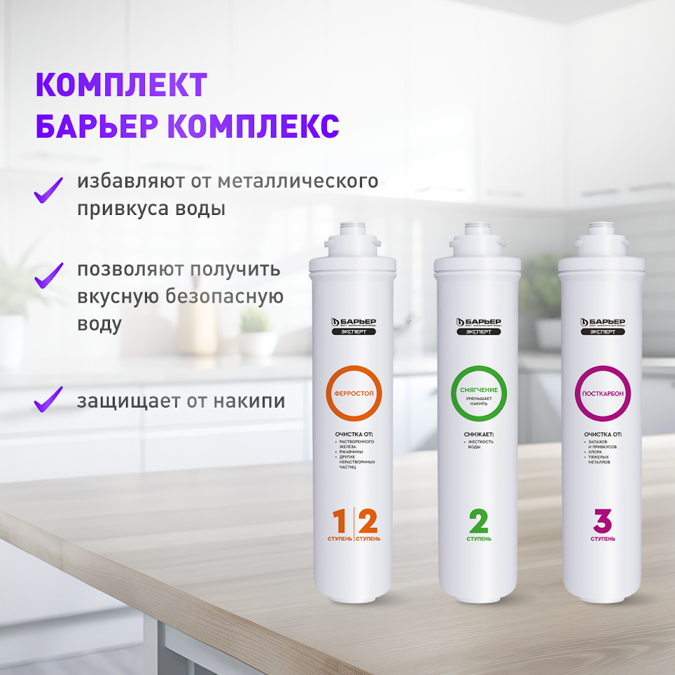 Комплект сменных картриджей (фильтров) "БАРЬЕР ЭКСПЕРТ Комплекс", против накипи и железа интересное: