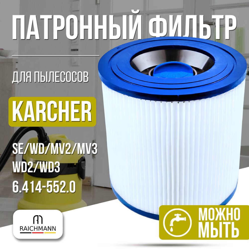 Патронный фильтр моющийся для пылесоса Karcher SE/WD, MV2, MV3, WD2, WD3, D2250, WD3.200 (6.414-552.0) интересное: